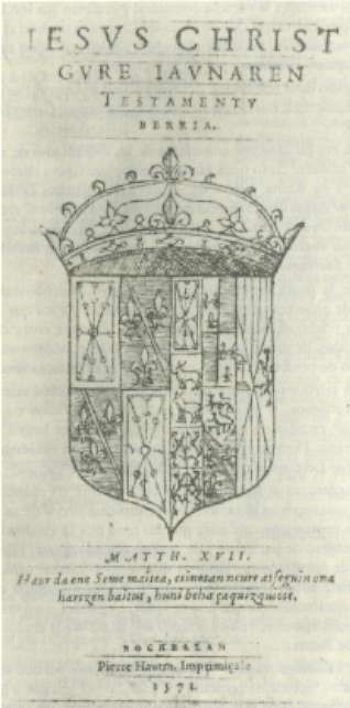 El más conocido de sus apoyos al protestantismo fue la traducción del Nuevo Testamento al vasco, para lo que llamó a Juan de Lizarraga (1506-1601), nacido en Beraskoitze, Laburdi. Un sacerdote que en 1559 se convirtió al protestantismo, buscando entonces asilo en la Navarra de Juana de Albret. Se ha dicho que Lizárraga es al euskera como Shakespeare al inglés o San Jerónimo al latín. En la portada del Nuevo testamento aparece el escudo de la reina. El libro contiene una deicatoria a la reina en euskera y en francés